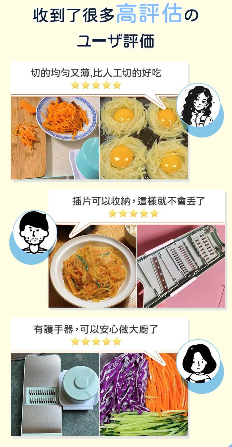 12分鐘前【多功能安全切絲器】幫您輕鬆搞定各種蔬菜,切片、切絲一機搞定,讓你輕鬆變身廚藝大師! - 磁吸多功能護手切絲器6件套-1入組